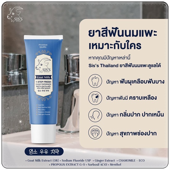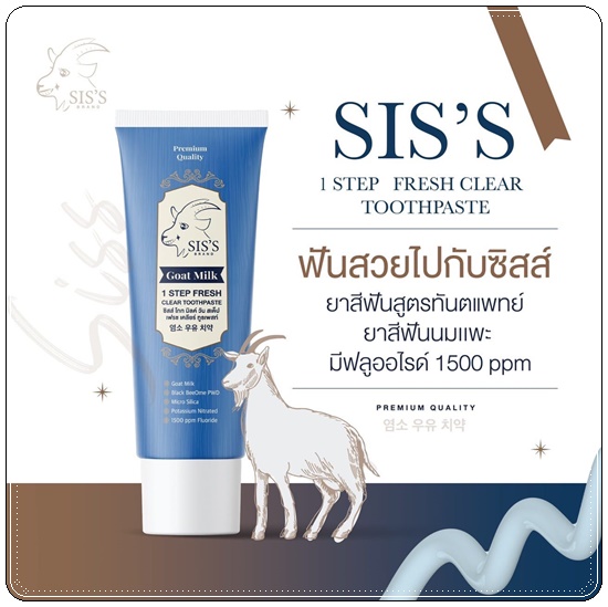 ยาสีฟันนมแพะ Goat Milk 1 STEP FRESH CLEAR TOOTHPASTE ยาสีฟันซิสส์