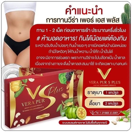 วิธีทาน VERA PUR S Plus : ทานก่อนมื้ออาหาร 15-20 นาที ครั้งละ 1-2 เม็ด